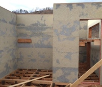 С помощью фибролитовых плит плотностью 400 кг/м3 и толщиной 50 мм утепляют полы, наружные и внутренние стены, плоские кровли. Также из них создают сэндвич-панели. Материал отлично подходит для заполнения стеновых перегородок и пустот.